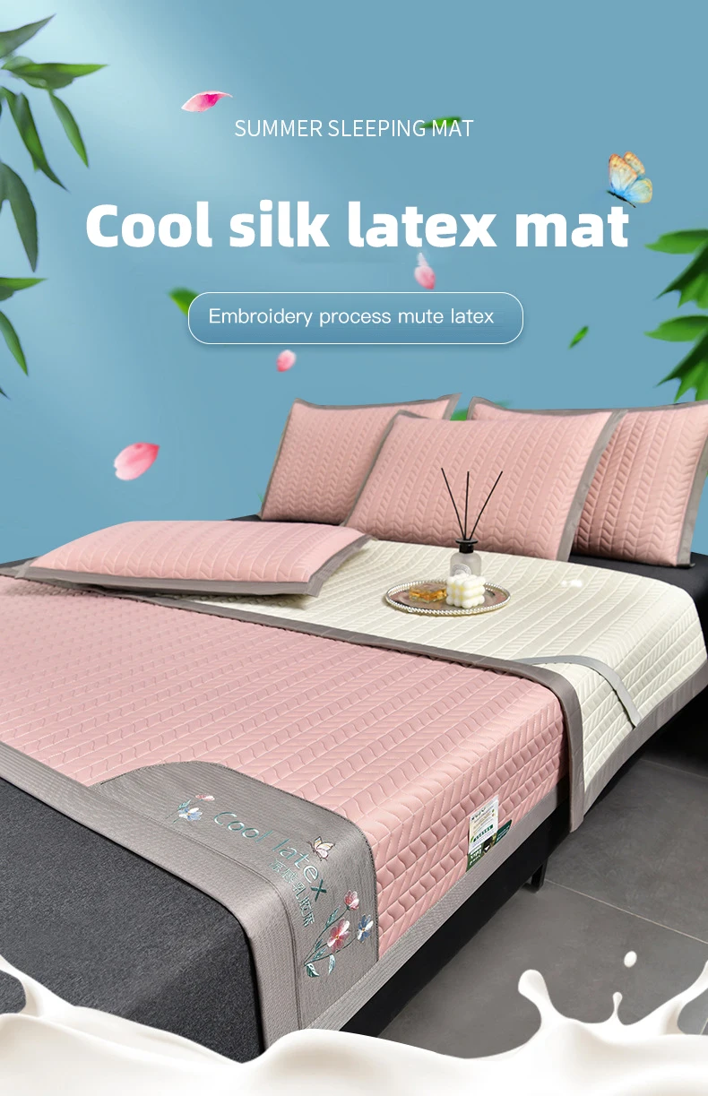 New cool silk latex cooling mat, ice silk mat set, washable summer home dormitory naked sleeping heat dissipating bed sheets
