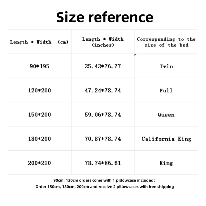 The sizes of this summer bed sheet are 90cm * 200m (suitable for Twin, Twin XL, size beds), 120cm * 200cm (suitable for Full size beds), 150cm * 200cm (suitable for Queen size beds), 180cm * 200cm, 200cm * 220cm (suitable for California King size beds), and 220cm * 240cm (suitable for King size beds); This quilt is a summer specific heat dissipating bed sheet, washable, machine washable, and can sleep naked. Please choose the size and color you need to place an order. Thank you for your visit and wish you a happy life!