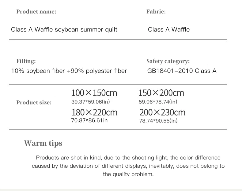 The sizes of this quilt are 150cm * 200cm (suitable for Twin, Twin XL, Full size beds), 180cm * 220cm (suitable for Queen size beds), 200cm * 230cm (suitable for California King size beds), and 220cm * 240cm (suitable for King size beds); This blanket is a thin blanket specifically designed for summer. It is washable and machine washable. Please choose the size and color you want to order. Thank you for coming and have a pleasant life!