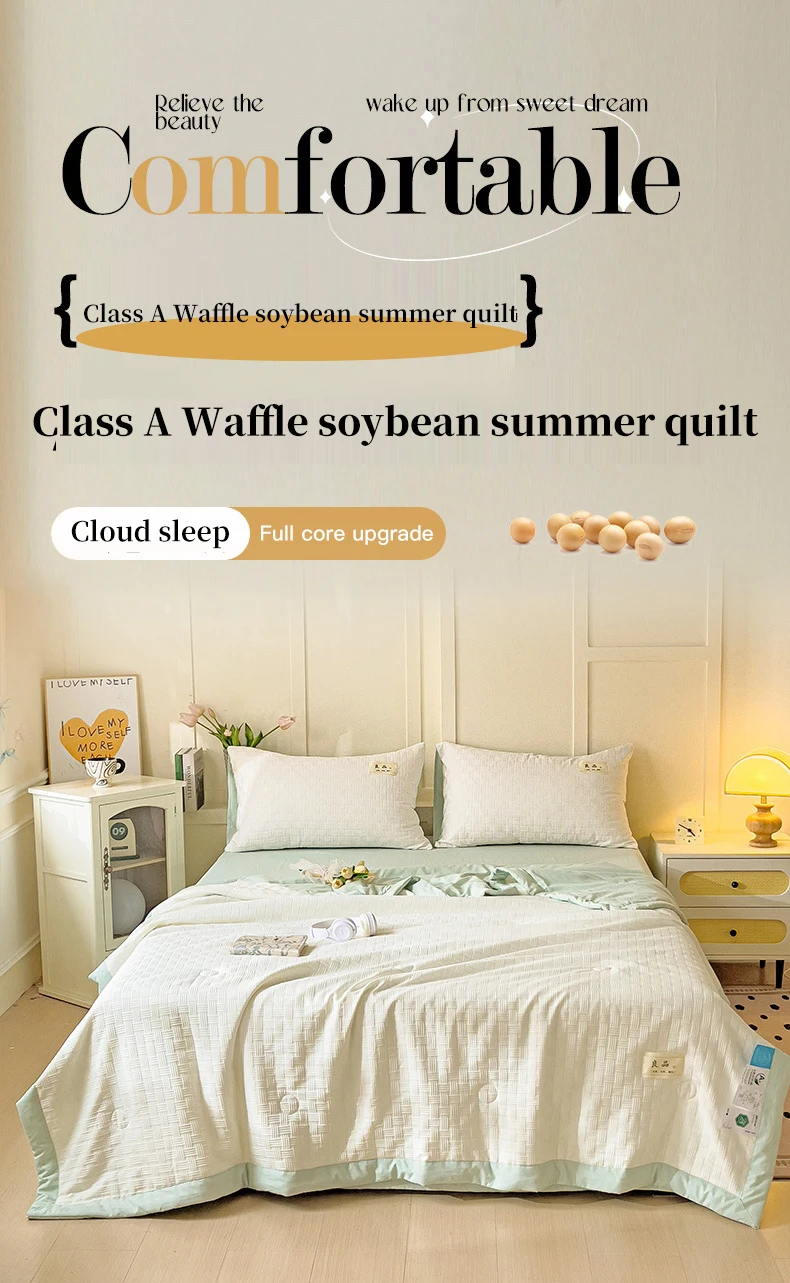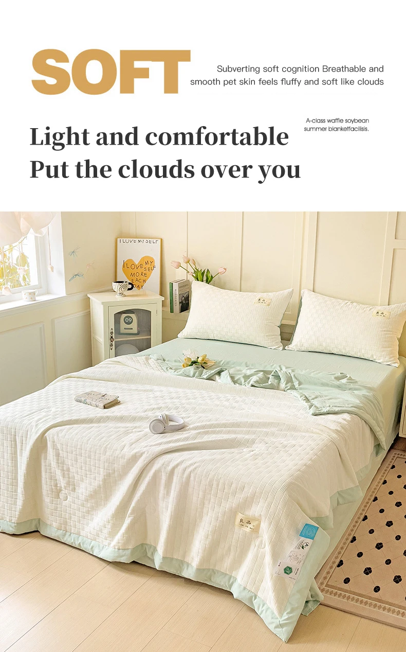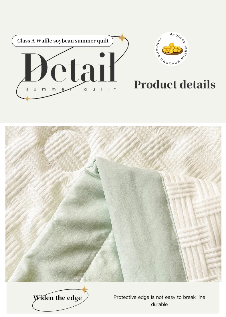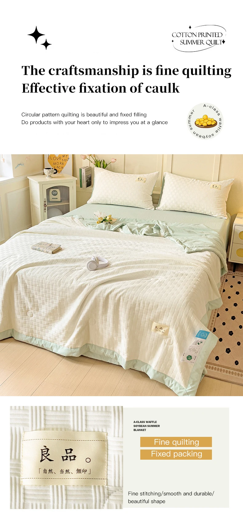 New Waffle Fiber Quilt, Summer Bare Sleeping Color blocked Thin Quilt, Cool Air Conditioning Summer Quilt, Machine Washable